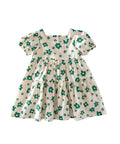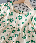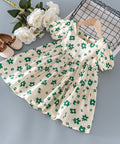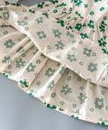 Baby Tiered Dress with Puff Sleeves – a charming and lightweight floral dress designed to bring soft elegance to your baby’s wardrobe. Featuring a pleated tiered skirt, puff sleeves, and a delicate green floral pattern, this dress is perfect for warm-weather outings, photoshoots, or special occasions.